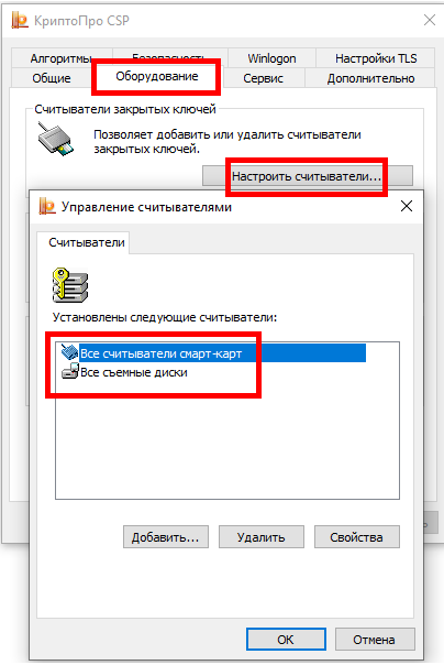 3.5 Открыть «Оборудование» – «Настроить считыватели». Если все настройки произведены верно, в окне отобразятся считыватели