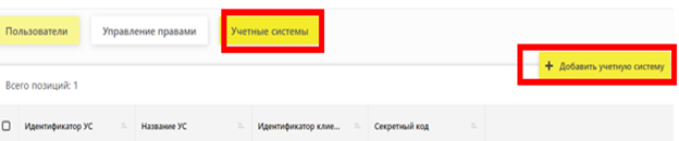 8. Выбрать вкладку «Учетные системы». Нажать «Добавить учетную систему».